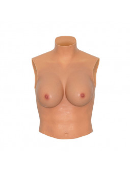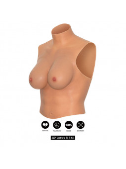 Realizzato in silicone puro al 100%, questo top si distingue per la sua morbidezza, flessibilità e resistenza. Presenta seni voluminosi e morbidi, accuratamente scolpiti per offrire una sensazione naturale al tatto, insieme a capezzoli realistici che aggiungono un elevato livello di dettaglio e autenticità. Il collo alto aggiunge stabilità e una vestibilità sicura, mantenendo il capo saldamente in posizione durante l39uso.