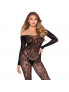 Lasciati conquistare da questo bodystocking in pizzo floreale super elasticizzato. Questo modello avvolge il corpo, esaltando i tuoi lineamenti dalla testa ai piedi. Grazie alla scollatura, può essere indossato sopra le spalle o in stile bardot. Questo bodystocking non ha apertura sul cavallo.